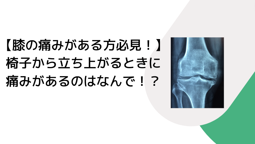 椅子から立ち上がるときに痛みが発生するのは、簡単に言ってしまうと膝の曲がる角度(以下屈曲角度)、伸びる角度(以下伸展角度)が十分に足りていないことが原因になることが多いです。